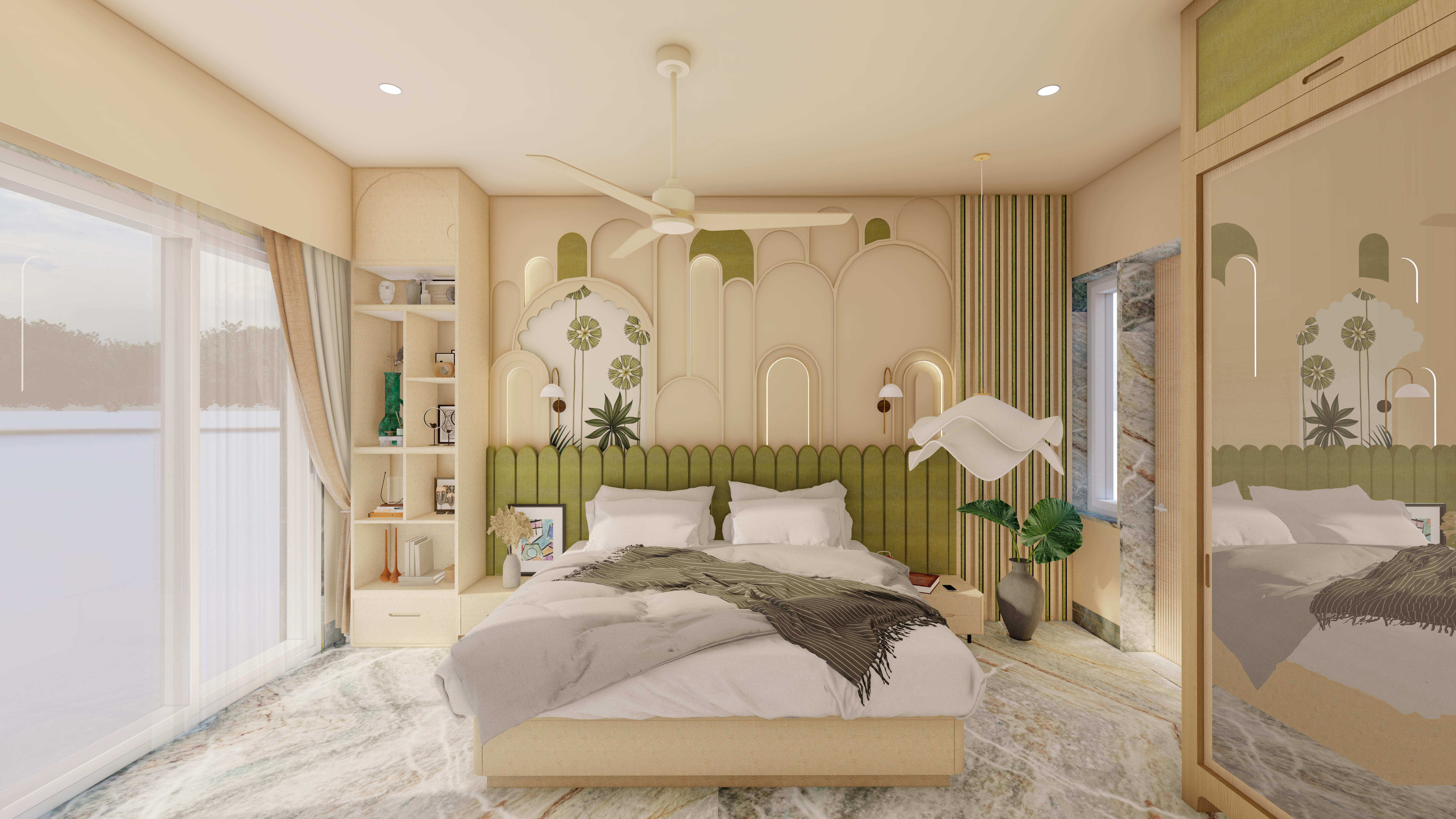 Context-inspired features, such as the second-floor jharokhas, flank the courtyard to create light-borrowing bay windows for the bedrooms. Imagine reclining in these window seats, watching the rain or listening to the gentle splashing of the water body in the courtyard below. These are the curated, joyous moments especially designed for the residents of this beautiful Home of Infinite Joy.
