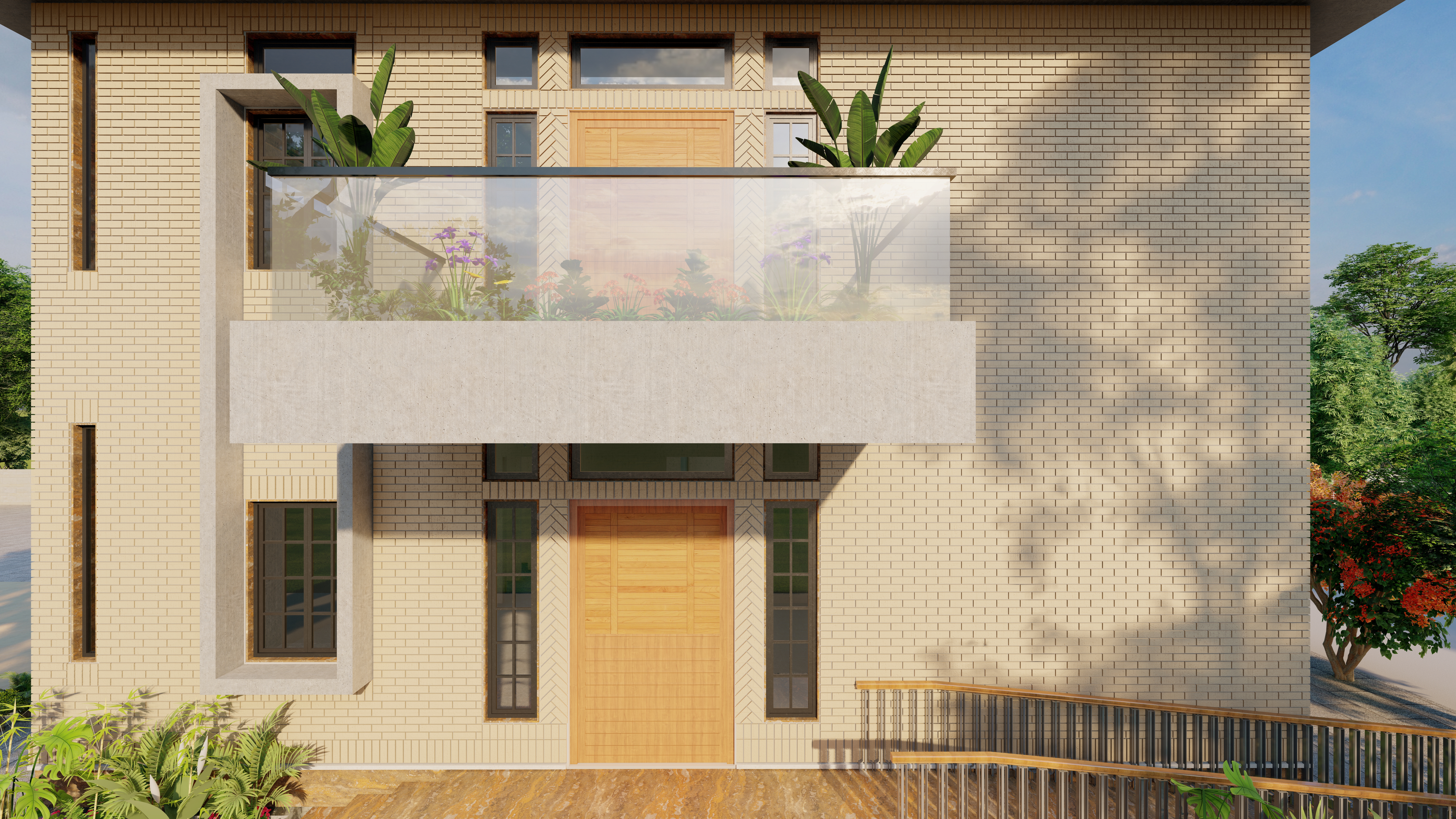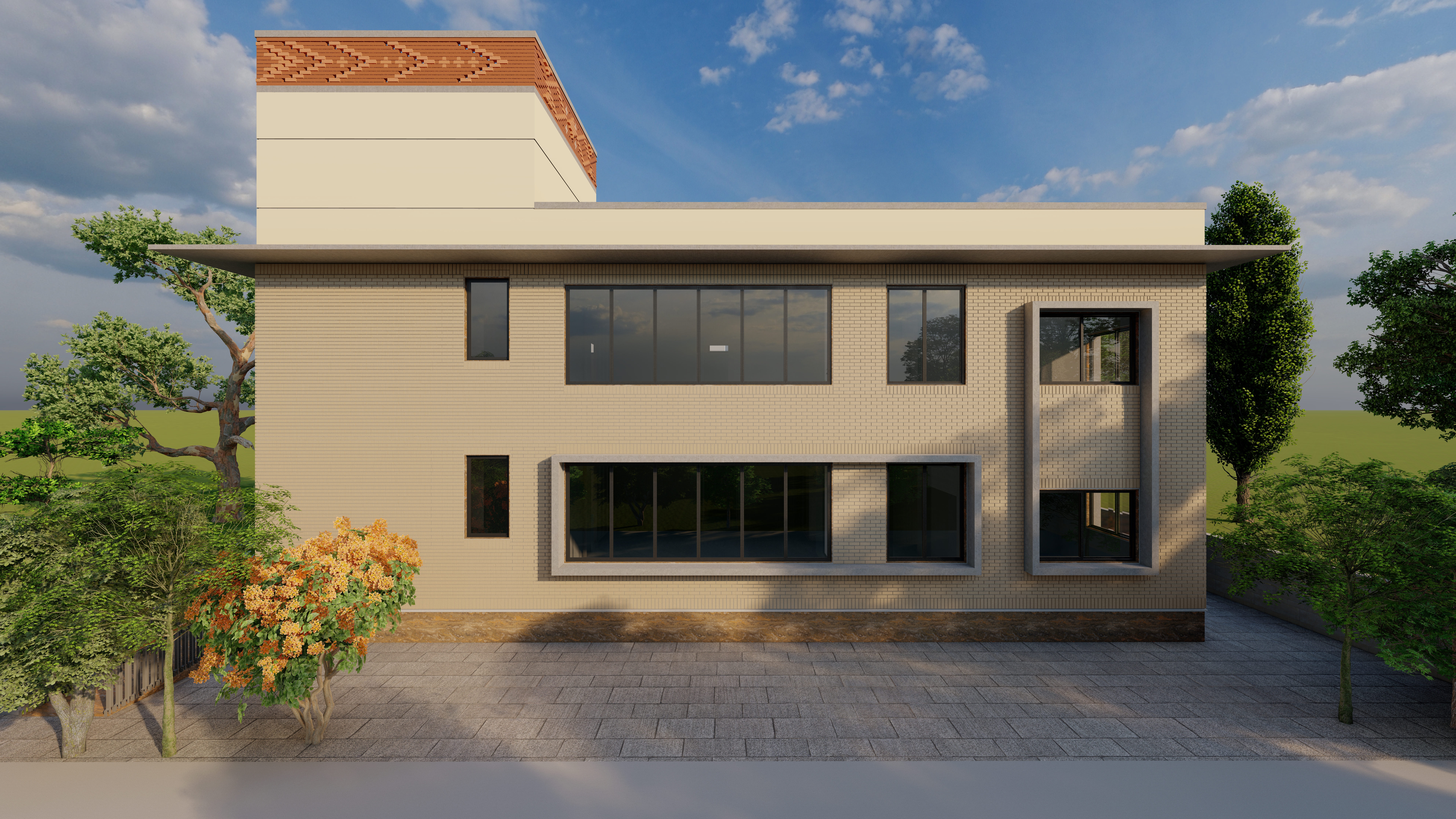 Face Brick, Concrete, Glass, Aluminium