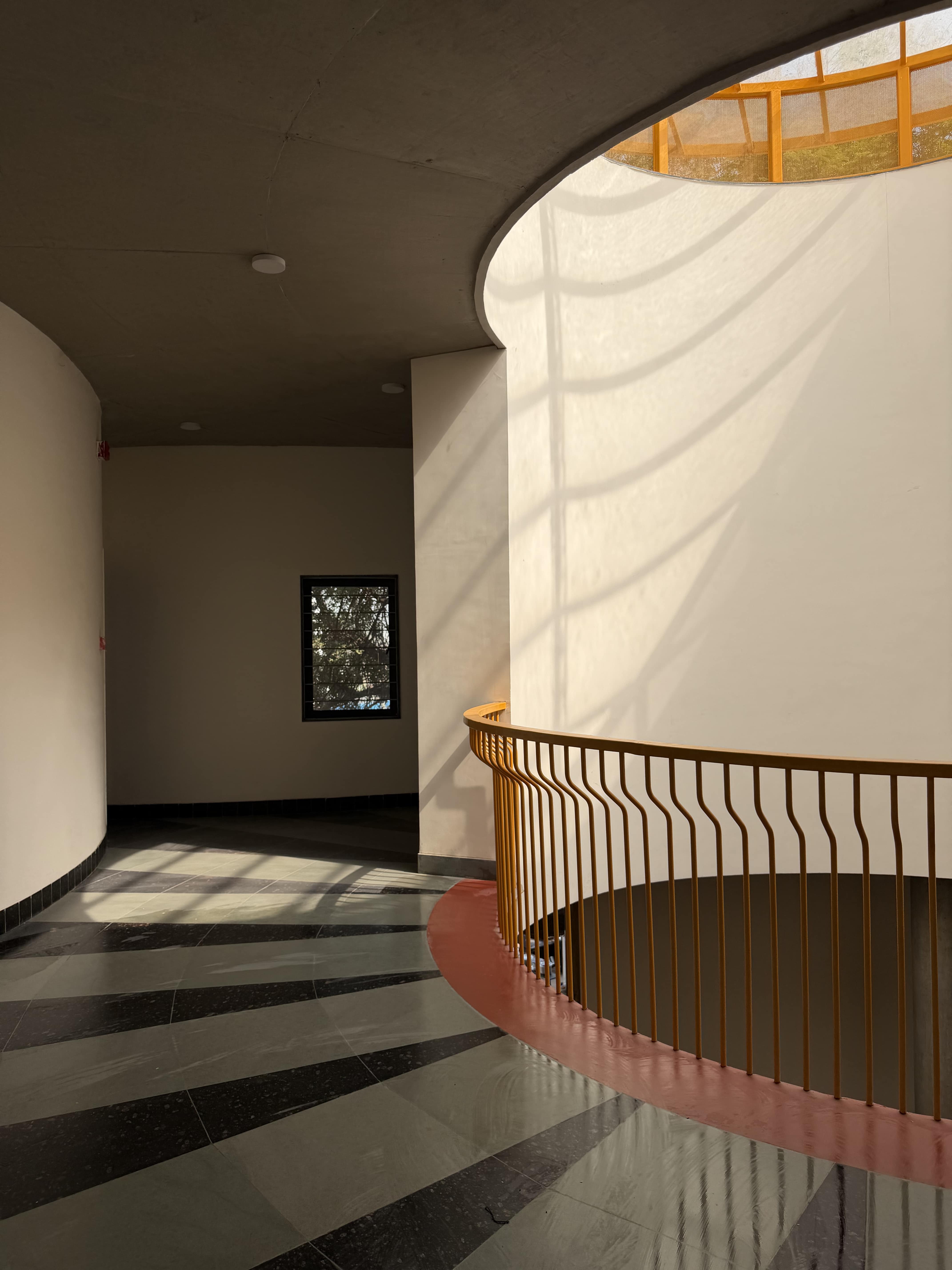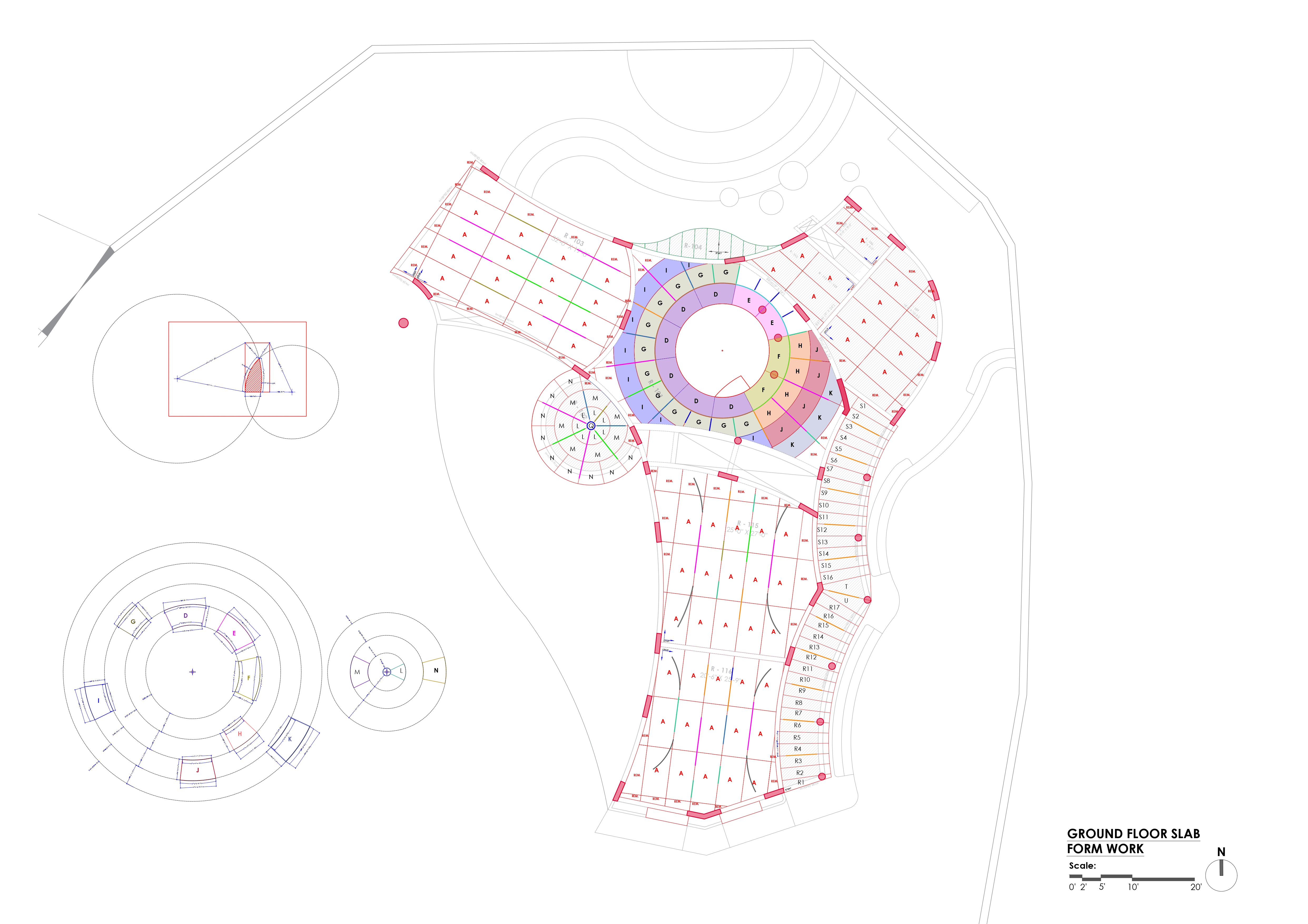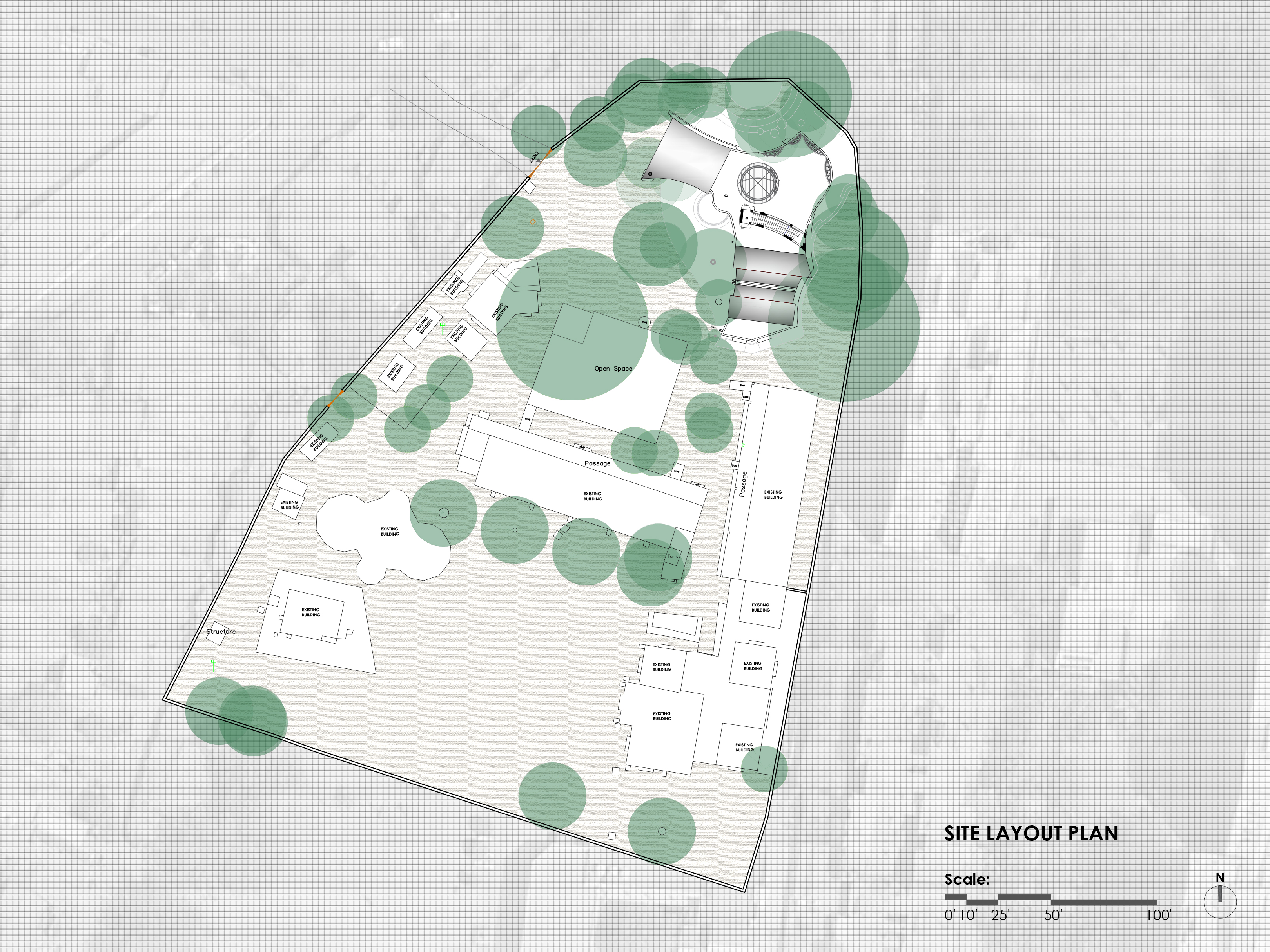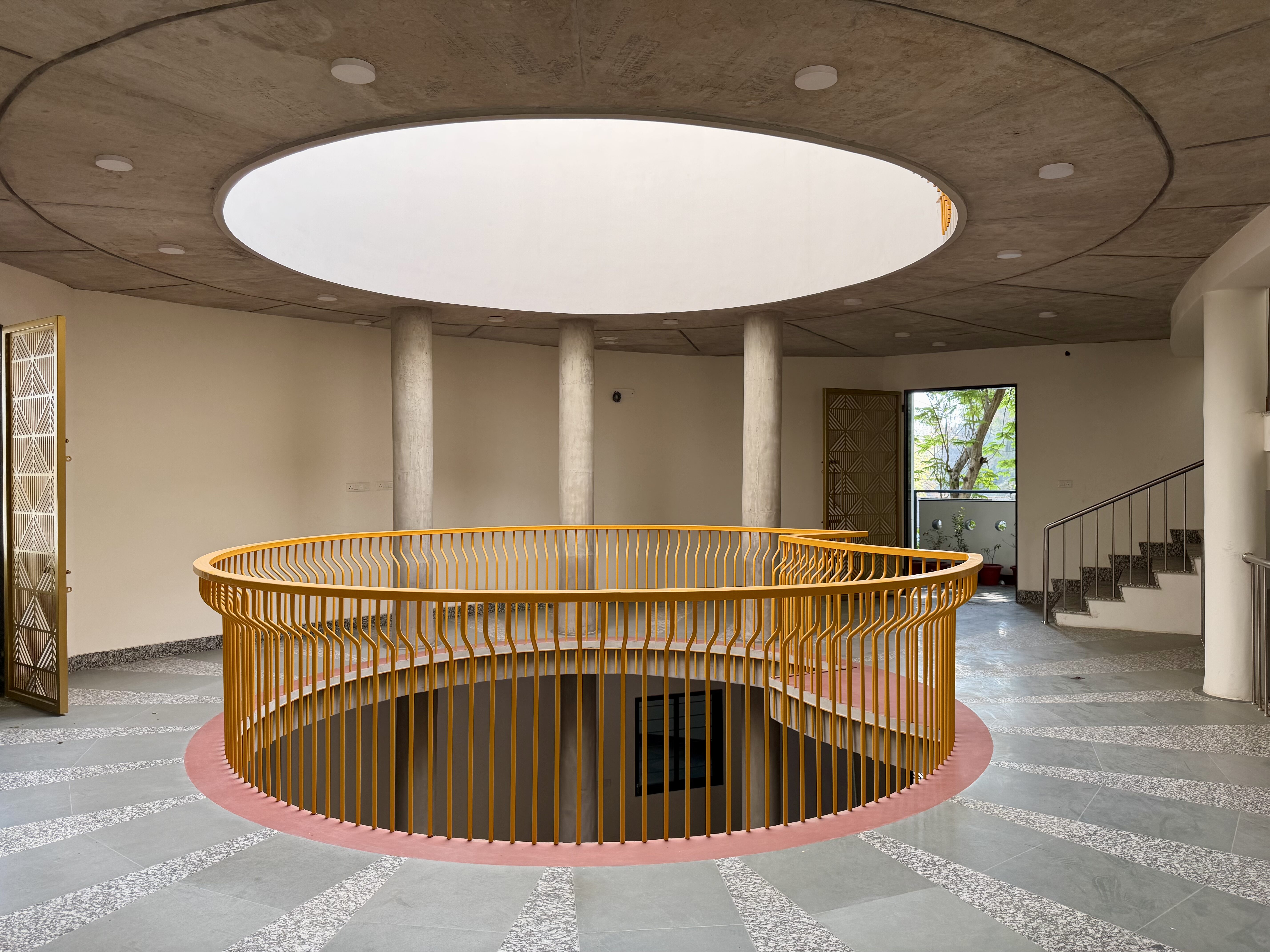The result? An architecture that gives flight to students’ aspirations and dreams; shaped by more than 35 mature trees surrounding the site. It seems as if the building took the space and form that nature for intended it to take. The first two floors of the building boasts 6 classrooms, including an amphitheatre style classroom, designed to improve visibility even from the last row of seating. Each classroom has unique flooring, informed by feedback received from students during design workshops, giving a unique character to each space. The second floor boasts spaces that heighten experientiality and volume with gravity defying vaulted and double vaulted roofs in the activity room and library, respectively. The science lab has a sense of meditative calm to it, with semicircular skylights flooding the walls with ambient light.