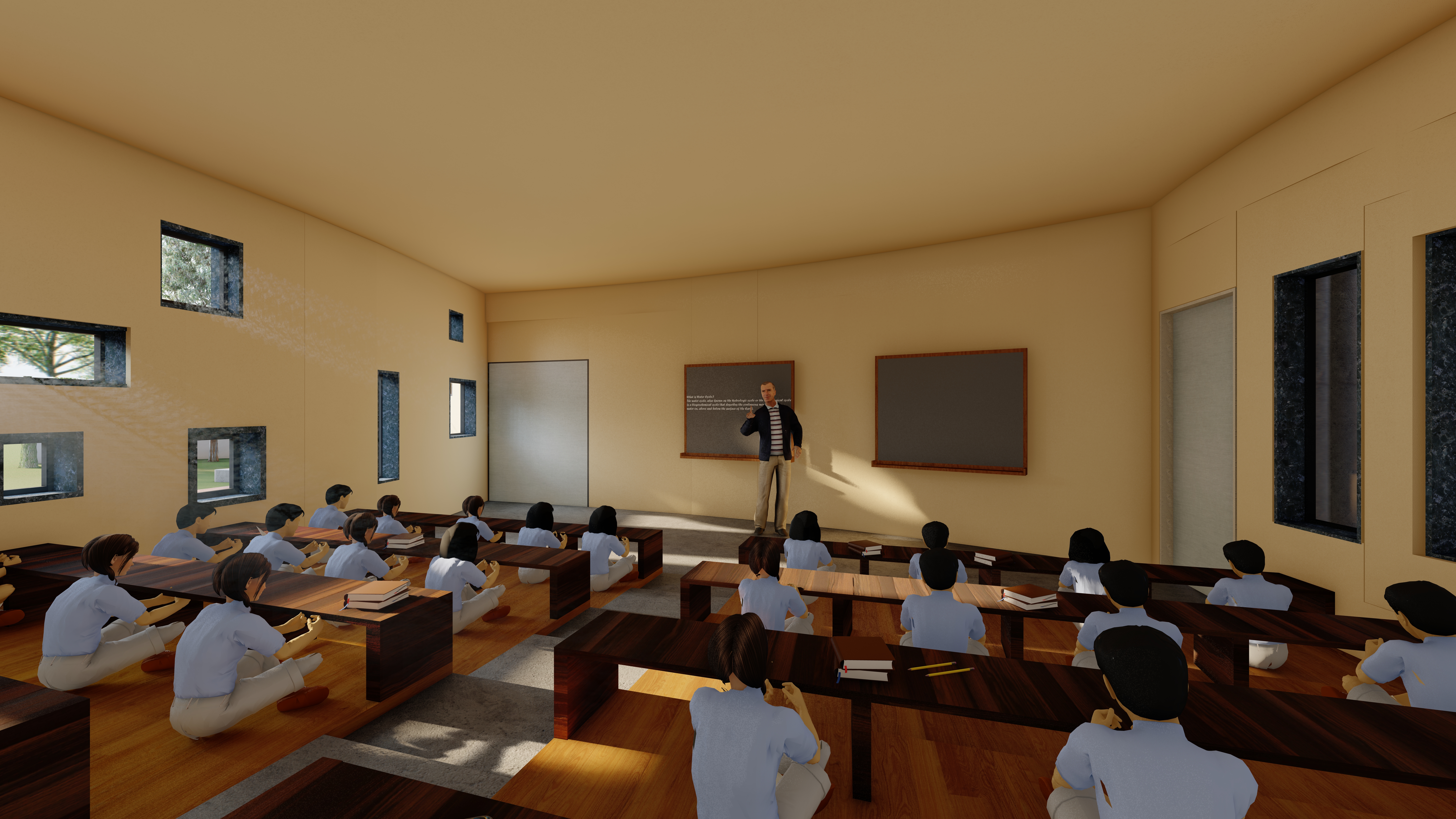 Each classroom is filled with natural light and is facilitated by cross ventilation through design. Anthropometrically modulated openings create an array of view avenues for students.
